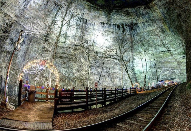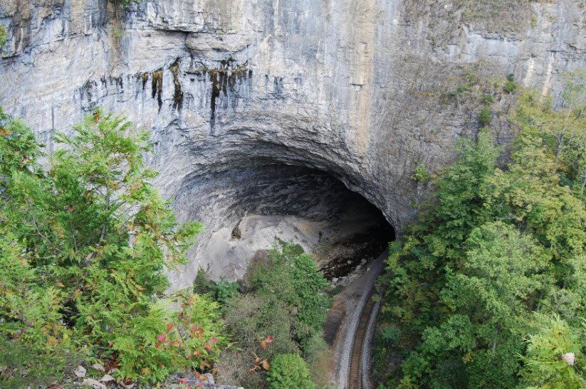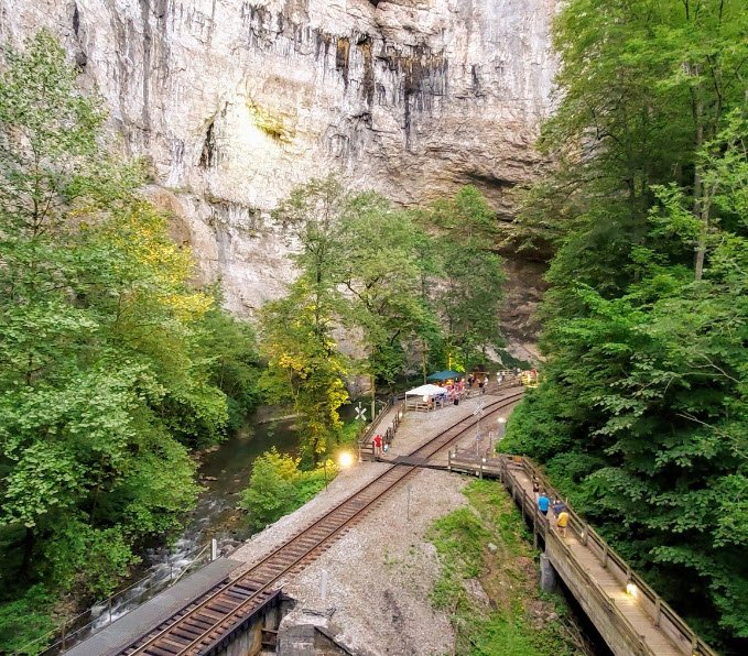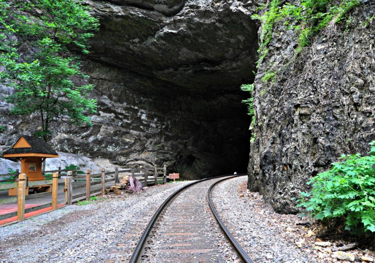 Often called the "Eighth Wonder of the World" by William Jennings Bryan, the tunnel is so large it has been used by passenger and coal trains since the late 19th century. The park includes hiking trails, a chairlift to the tunnel floor, a boardwalk for close exploration, campgrounds, cabins, and picnic areas.