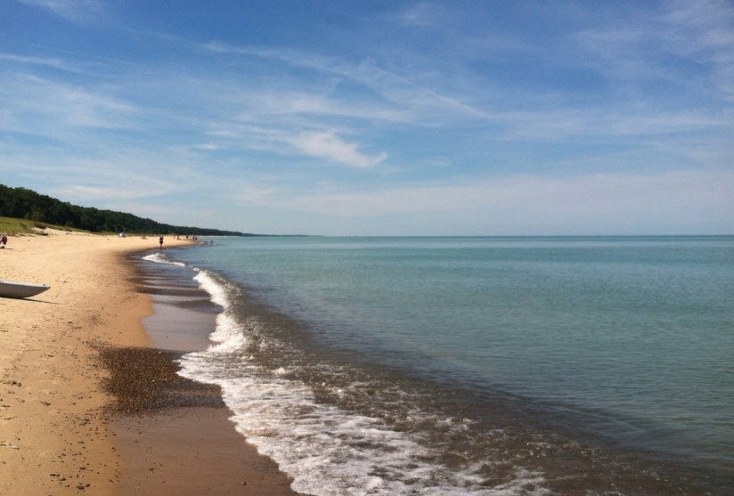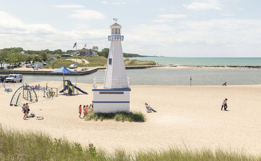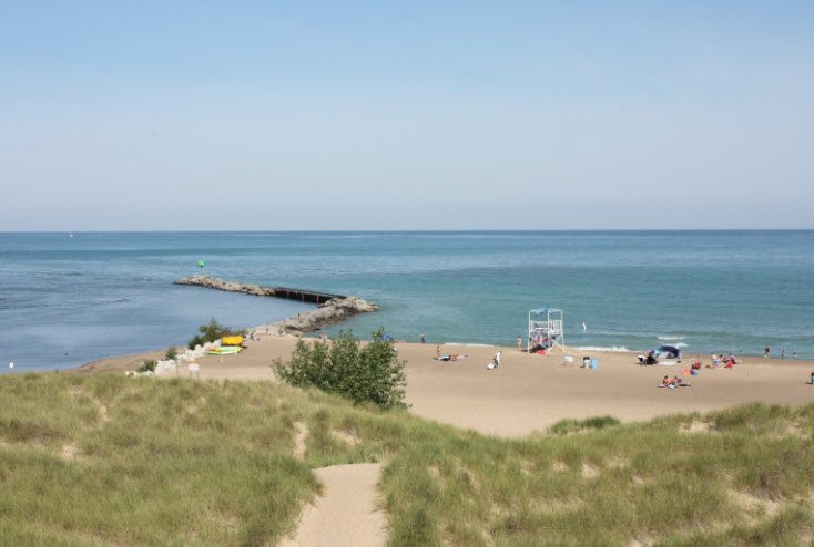 New Buffalo Beach in Michigan offers nearly 800 feet of soft sandy shoreline located at the north end of Whittaker Street, just across the Galien River Bridge.