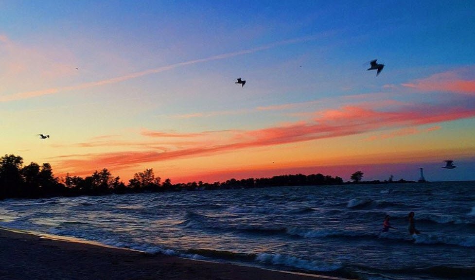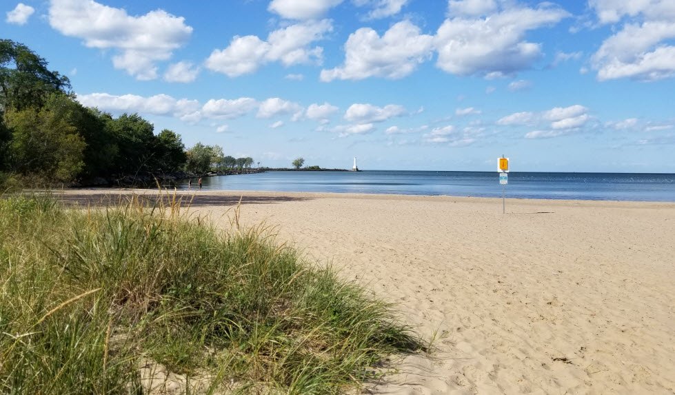Nickel Plate Beach in Huron, Ohio, is a spacious, family-friendly public sandy beach along Lake Erie offering stunning views of sunrises, sunsets, and the Huron Lighthouse, tucked away in a quiet neighborhood for a peaceful escape.