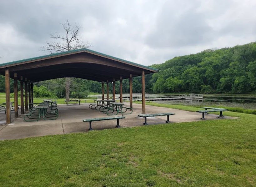 One of southern Iowa's most picturesque parks, it offers excellent fishing for largemouth bass, channel catfish, bluegill, crappie, northern pike, and tiger muskie from shoreline jetties, a boat ramp, fish cleaning station, and no-motor (rowboats and electric only) waters, plus a sandy unsupervised swimming beach.