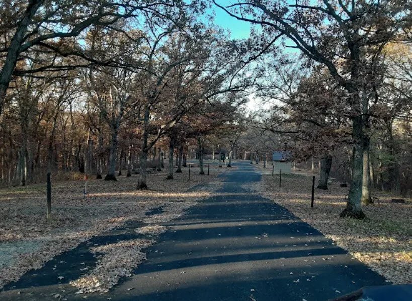 Nine Eagles State Park spans 1,100 acres of rugged wooded hills and scenic valleys abundant with ancient oak trees—some over 300 years old—in Decatur County near Davis City, southern Iowa, USA, dedicated in 1952 around a crystal-clear 64-acre lake fed by a timbered watershed.