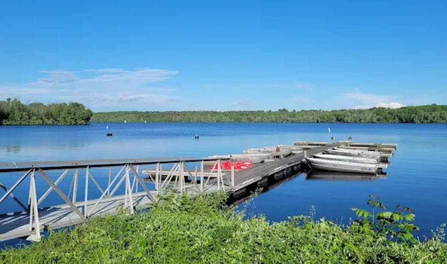Established in 1973 amid rolling hills as a green haven near rapidly developing areas close to Philadelphia, Quakertown, and Doylestown, it attracts summer crowds for boating including catamarans and windsurfing from four launches, fishing for stocked species, swimming at a pool, and picnicking.