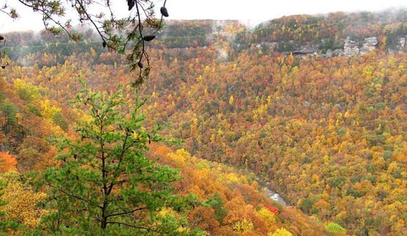 This deep 10-mile gorge carved by North Chickamauga Creek—a designated State Scenic River—features steep sandstone bluffs, rich coves, mixed forests with old-growth pockets of tulip poplar and basswood, diverse habitats hosting rare plants, bald eagles, and peregrine falcons.