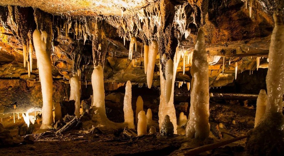 The cavern was formed by an underground river that eroded limestone over thousands of years and contains many crystal formations, with approximately 90% of its stalactites and stalagmites still active. Visitors can explore two main tours: the Historic Tour featuring the original discovery area and the Natural Wonder Tour showcasing newer sections with the largest stalactite in Ohio, the Crystal King.