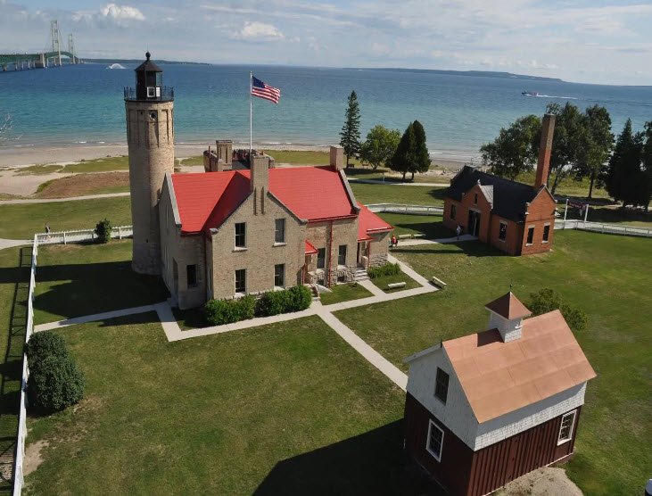 The address of Old Mackinac Point Lighthouse is 526 N Huron Ave, Mackinaw City, MI 49701, United States.