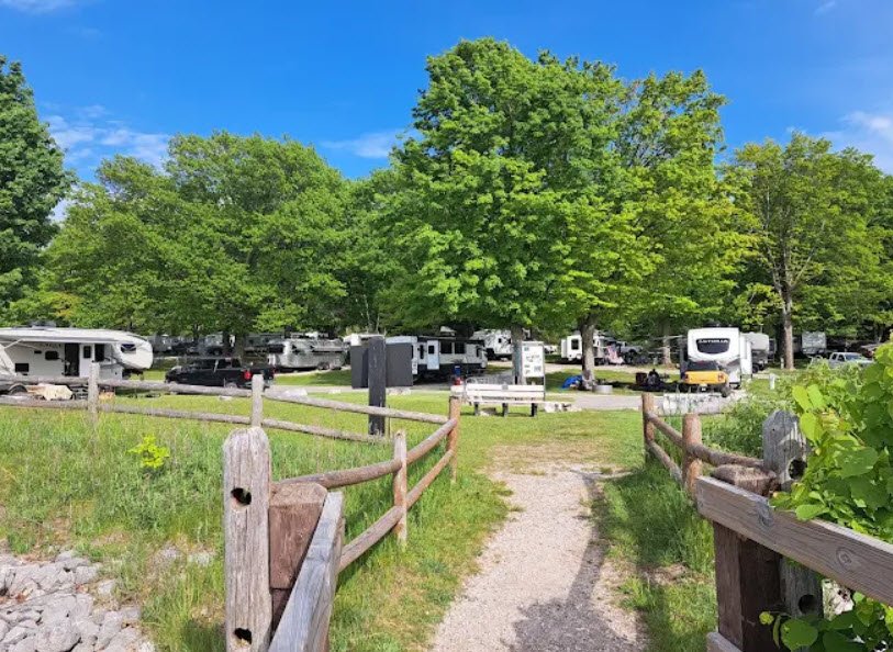Stay overnight in a 160‑plus‑site modern campground shaded by oaks and maples, making it a scenic, history‑rich day‑use and camping destination along Michigan’s western shore.