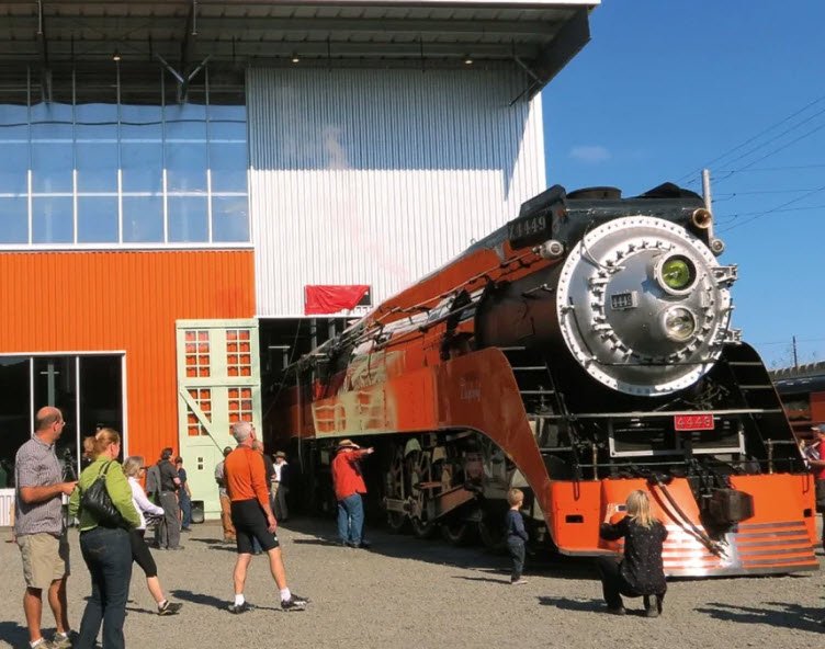 These restored engines, including the famous 4449 that pulled the 1976 American Freedom Train, highlight Oregon's rail history with exhibits on vintage rail cars, equipment, Brooklyn Yard layouts, and the role of railroads in Portland's growth, all maintained by volunteers in a modern enginehouse bordered by active rail lines.