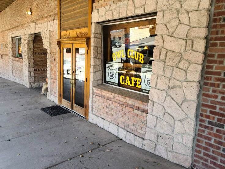 Owl Club Bar and Steakhouse is a family-owned roadside eatery and bar at 61 North Main Street in Eureka, Nevada, along the historic "Loneliest Highway" U.S. Route 50, serving American classics like steaks, burgers, and breakfast in a welcoming Western atmosphere.