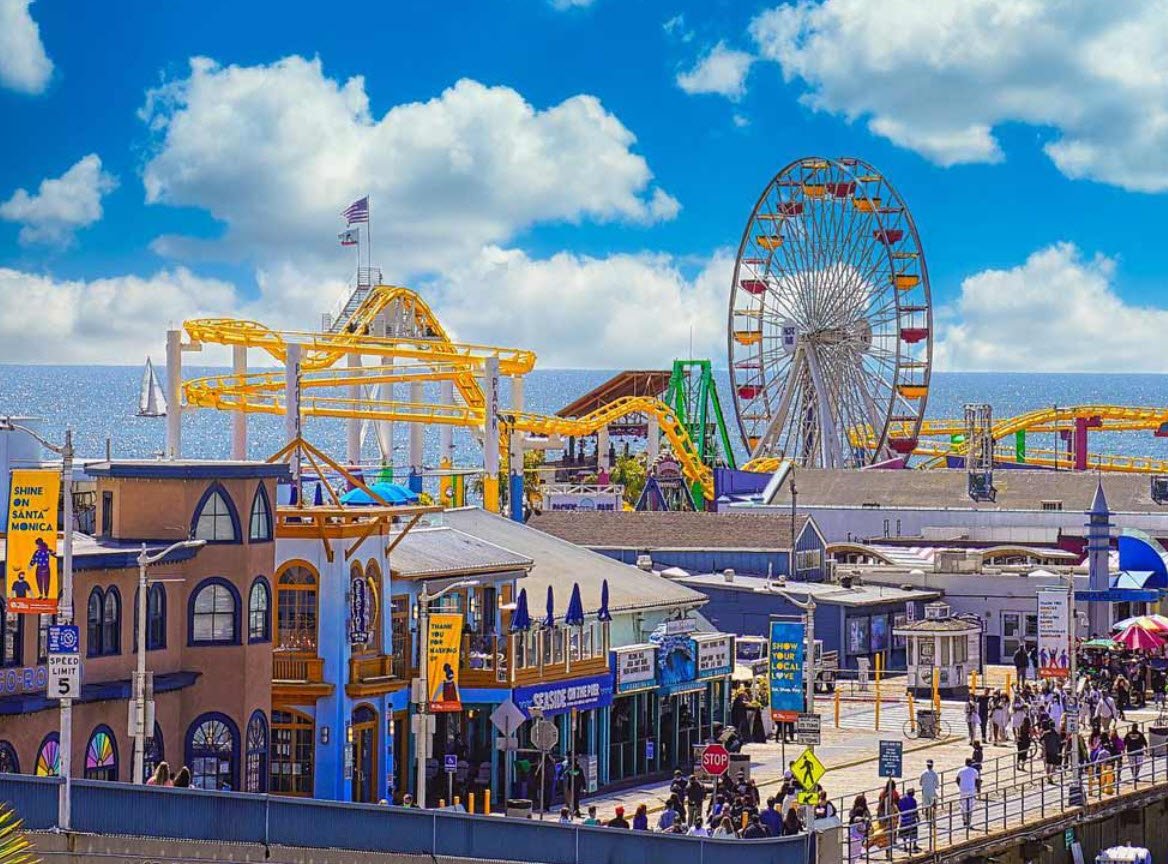 Pacific Park on the Santa Monica Pier, opened in 1996, is the West Coast's only amusement park located on a pier. It features twelve rides, including the world’s first solar-powered Ferris wheel called the Pacific Wheel, which offers stunning views of the Pacific Ocean.