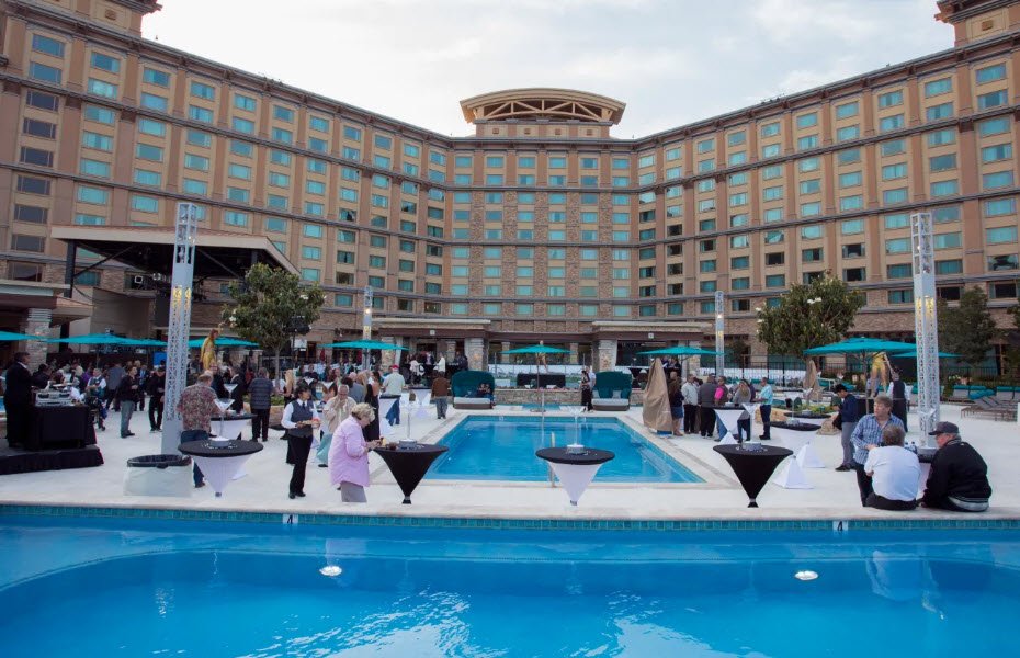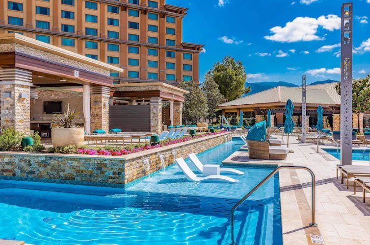 The expansive property features 86,000 square feet of gaming space with 2,250 slot machines, 84 table games, nine restaurants, four entertainment venues including a 2,000-seat events center, two pools, and an RV resort, operating 24/7 for guests 21 and older as a AAA Four-Diamond award winner.