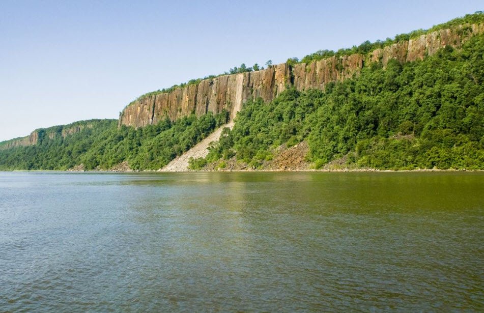 Palisades Interstate Park in New Jersey stretches 12 miles long and half a mile wide across 2,500 acres of wild Hudson River shoreline, uplands, and dramatic cliffs rising up to 532 feet at Point Lookout, forming a National Historic Landmark and National Natural Landmark just minutes from Manhattan.