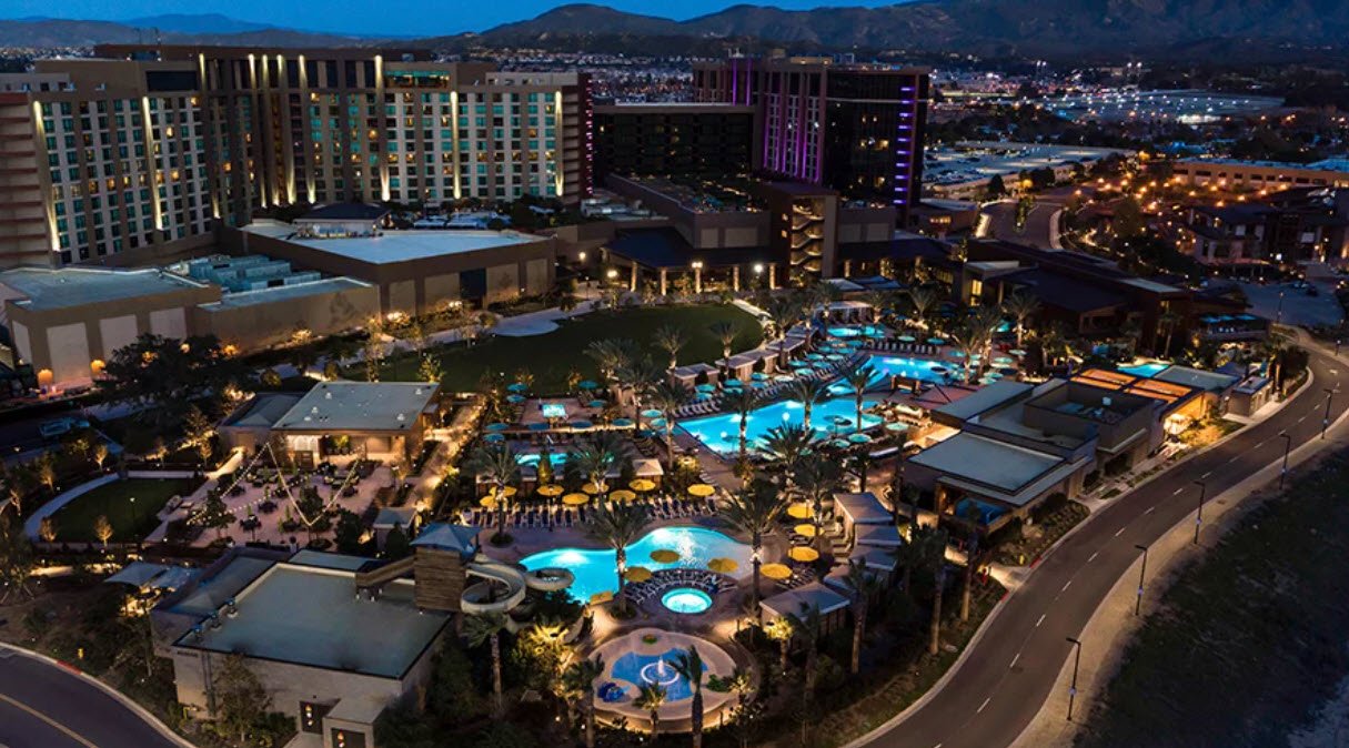 It opened in 2002 on the Pechanga Indian Reservation and has expanded significantly to include 200,000 square feet of smoke-free gaming space with over 5,400 slot machines, 152 table games, and numerous poker tables. The resort features a 1,090-room hotel, a large spa, a 40,000-square-foot events center, multiple restaurants and bars, and a tropical pool complex with pools, waterslides, and cabanas.