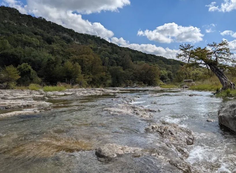 Opened in 1971, it offers hiking and mountain biking on nearly 20 miles of trails, equestrian paths, swimming, tubing, fishing, camping, and wildlife viewing including deer, turkeys, and the endangered golden-cheeked warbler amid oak-juniper woodlands. The park's ancient geology, with 300-million-year-old river limestone, draws visitors for its dramatic bluffs, river terraces, and outdoor adventures just an hour from Austin.