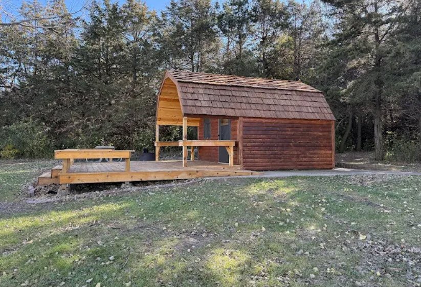 The park features 76 spacious electrical campsites with 50-amp service, 2 lakefront log cabins, 7 horse campsites, boat ramps, kayak rentals and launches, a swim beach, fishing pier, 5.5 miles of multi-use trails for hiking, biking, and horseback riding through prairie and wildflowers, an archery range with 14 targets, playgrounds, picnic shelters, basketball hoops, showers, dump station, and vault toilets open all year.