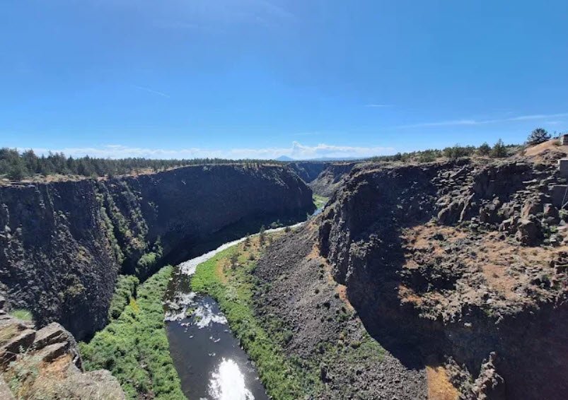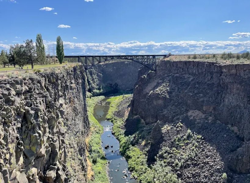 Named for 19th-century explorer Peter Skene Ogden, it offers dramatic 300-foot-deep basalt cliffs, a walkway along the canyon rim with views of the Crooked River, a small waterfall, the historic Crooked River High Bridge, and on clear days, distant Mount Hood and Mount Jefferson.