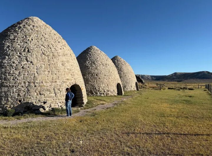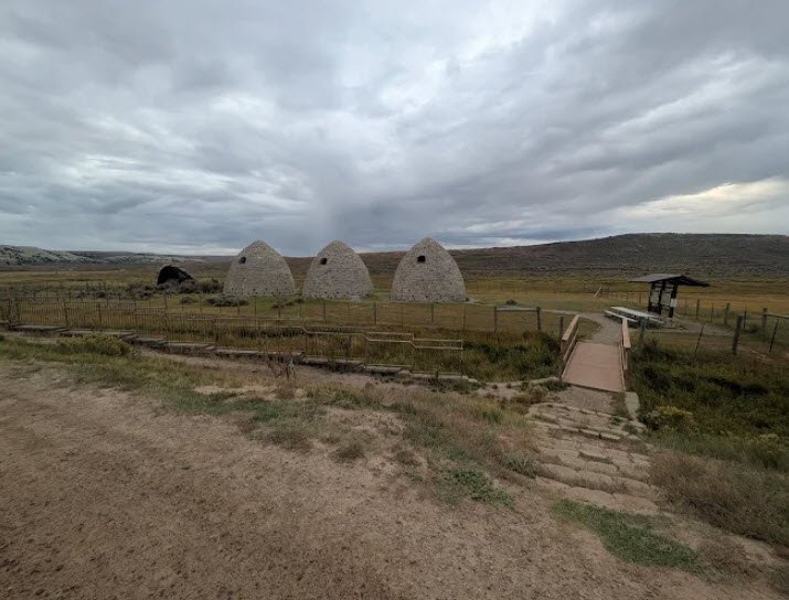 Piedmont Charcoal Kilns State Historic Site near Evanston, Wyoming, preserves three surviving beehive-shaped limestone kilns—each 30 feet high and wide—built in 1869 by Mormon settler Moses Byrne to produce charcoal from Uinta Mountains timber for Utah's iron smelters and blacksmiths, fueling the railroad-era industrial boom.