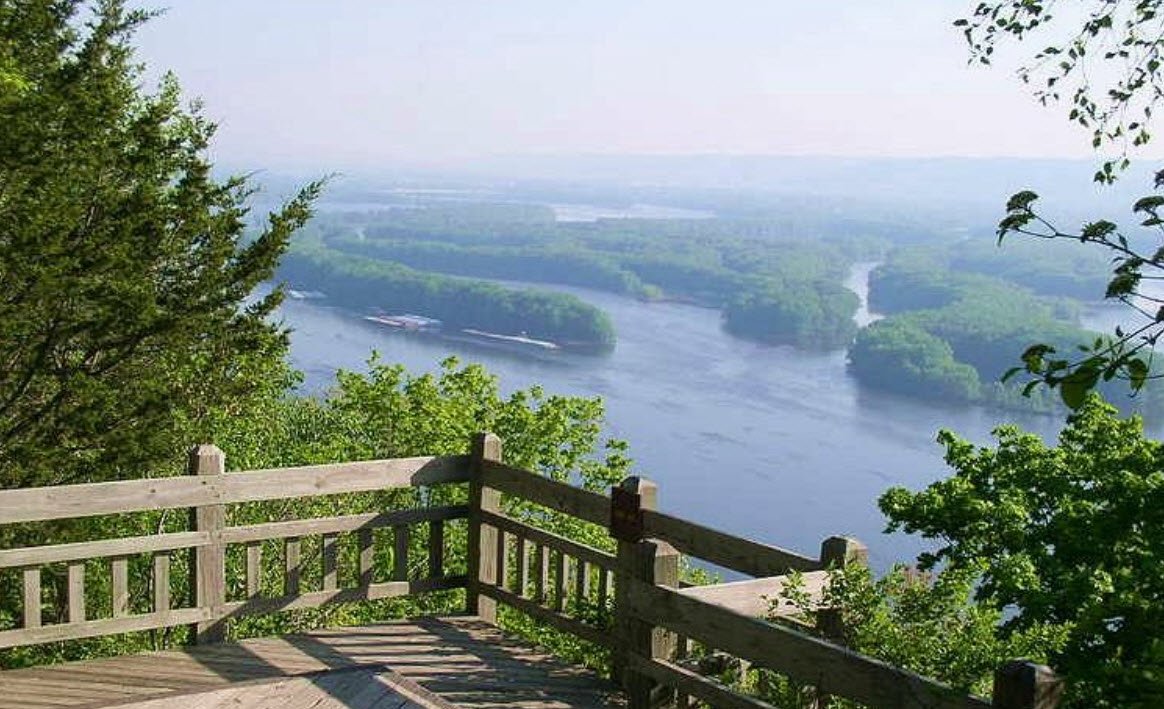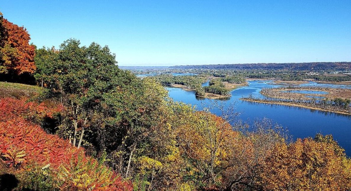 Pikes Peak State Park in Clayton County, Iowa, is a nearly 1,000-acre natural area famed for its dramatic 500-foot bluff overlooking the convergence of the Mississippi and Wisconsin Rivers.