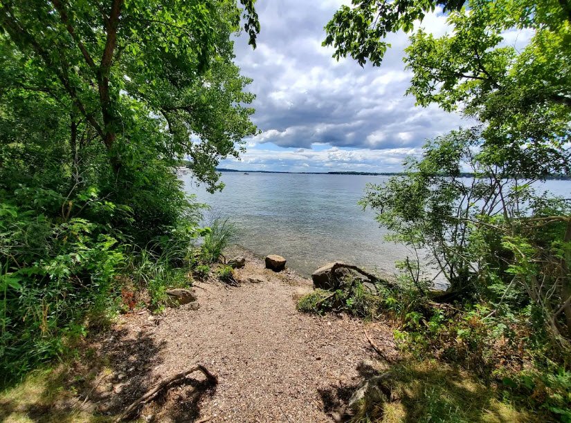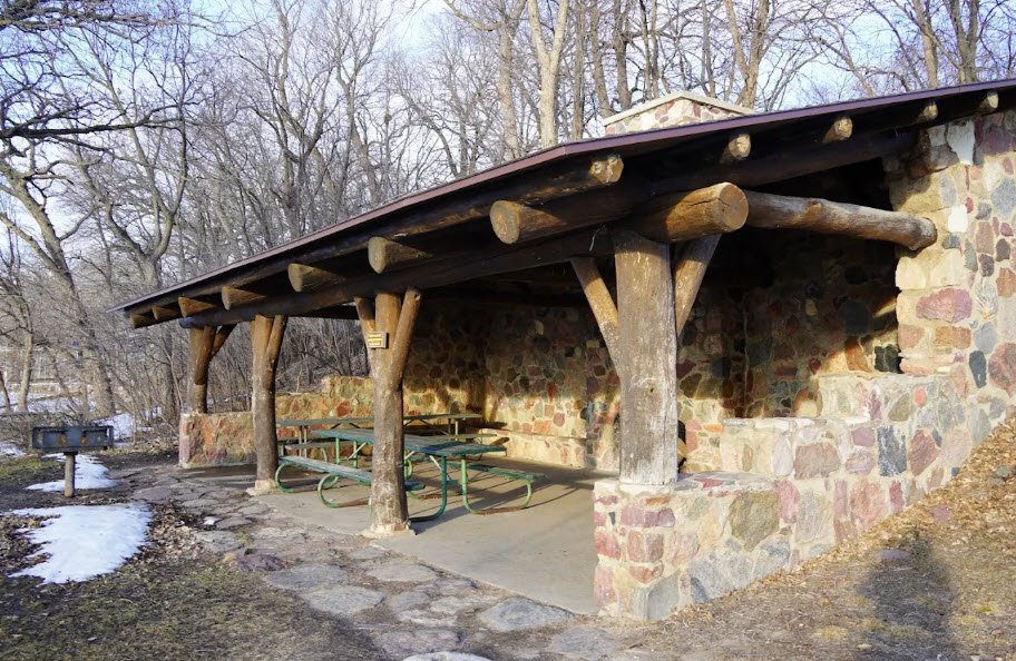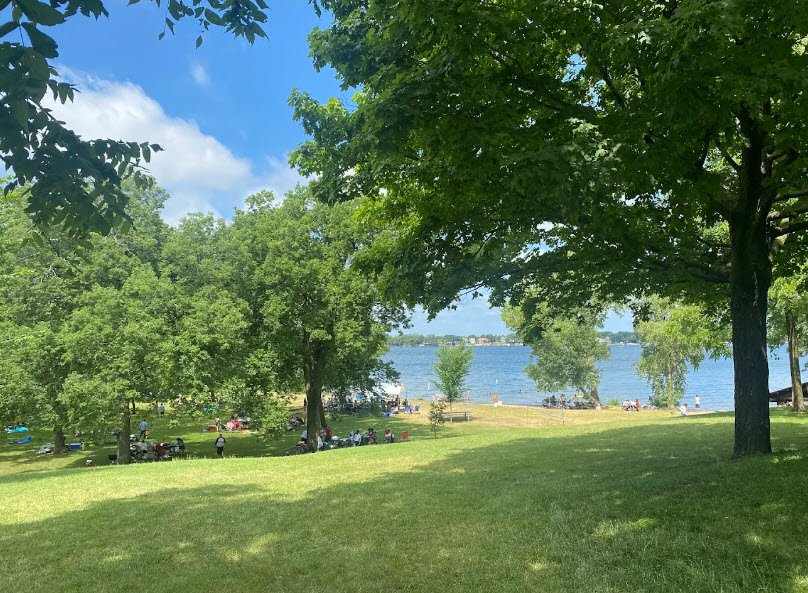 It features one of the area's most popular swimming beaches, a playground, picnic tables with stunning lake views, boating access, and fishing for walleye, bass, perch, and panfish amid clear glacial waters. The highlight is a historic Civilian Conservation Corps stone shelter from 1934—listed on the National Register of Historic Places—available for group events under Gull Point State Park management, offering shaded family gatherings in a serene, wooded setting.