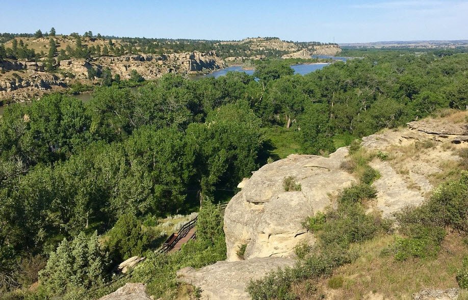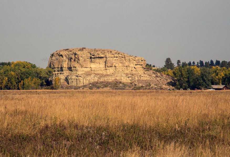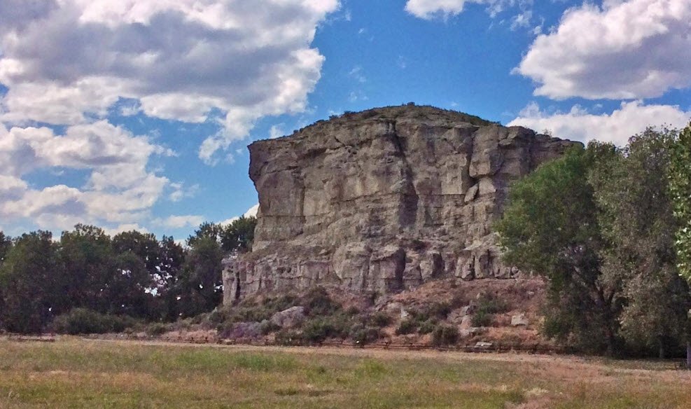 Pompeys Pillar is a prominent natural sandstone butte in Montana that rises nearly 150 feet above the Yellowstone River valley and covers about an acre at its base.