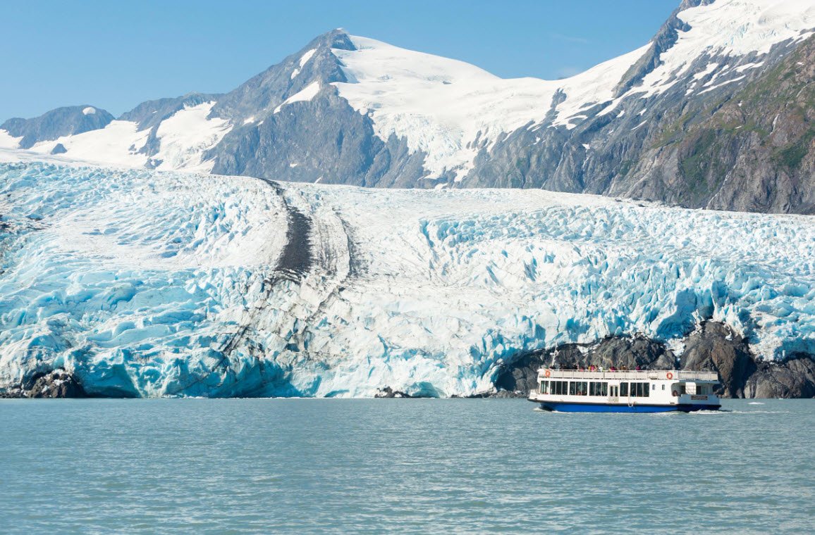 The glacier, located about 50 miles southeast of Anchorage, is accessible via the Begich/Boggs Visitor Center, but as the glacier has receded, visitors must take a boat ride across the lake to get close views.
