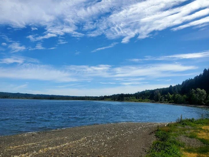 It features 73 campsites including 36 standard and 35 utility sites for RVs up to 60 feet, plus hiker/biker sites, modern restrooms with showers, picnic areas, a reservable shelter, amphitheater, five mooring buoys, and a dump station amid mature pines. Named after Indigenous gift-giving ceremonies on historic Skokomish lands, the year-round park sits along Highway 101 with easy beach access and views of the Olympics, requiring a Discover Pass for day use.