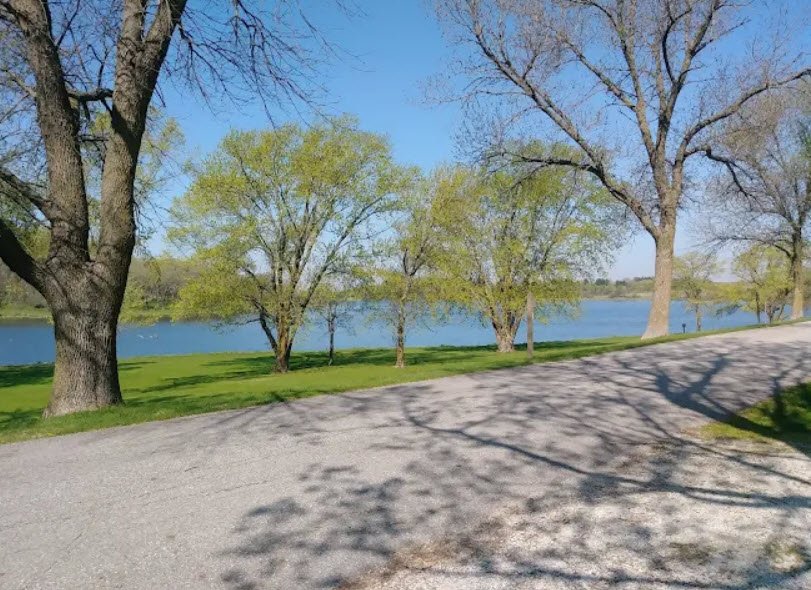 Prairie Rose State Park spans 422 acres in Shelby County near Harlan, western Iowa, USA, centered on a 218-acre man-made lake built in the 1950s and dedicated in 1962, named for a nearby vanished village.