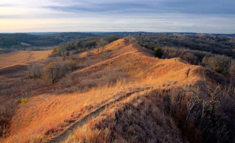 Preparation Canyon State Park spans 344 acres in the Loess Hills near Pisgah and Moorhead in western Iowa, USA, offering a rugged, undeveloped escape with dramatic ridges and valleys preserved from a vanished 1850s Mormon settlement named for spiritual "preparation" for the afterlife.