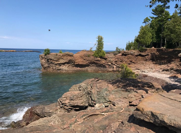 The park offers numerous hiking trails, picnic areas with restrooms, a children’s playground, and a historic wooden bandshell used for concerts. Popular spots include the east end’s lookout platforms with panoramic views of Lake Superior and the unique Black Rocks formation known for cliff jumping.