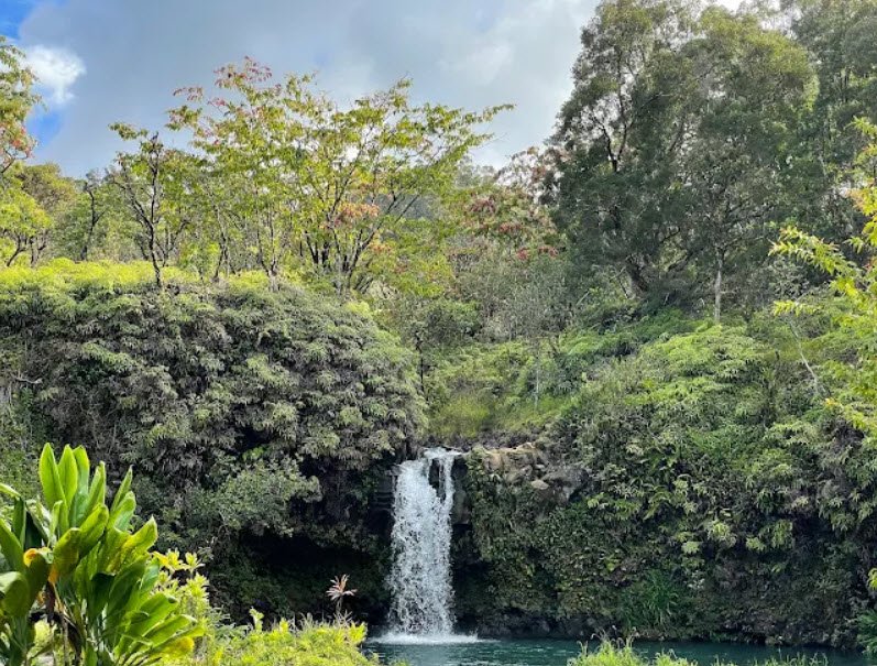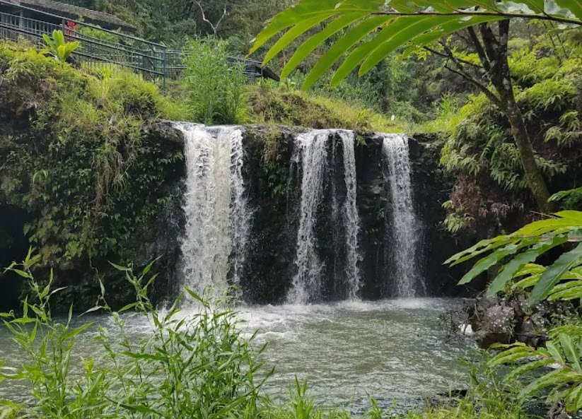 A paved trail leads easily to the falls and picnic tables shaded by towering trees, while a dirt path upstream accesses a larger cascade, offering birdwatching for native species amid soothing water sounds and verdant serenity. Open daily during daylight hours with no entrance fee, restrooms, trash cans, and ample parking, it's an ideal family-friendly stop for Road to Hana travelers to stretch legs, picnic, and recharge—just watch for slippery rocks, mud, and viaduct traffic.