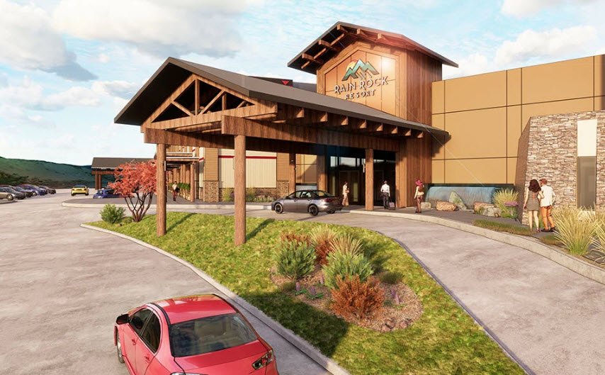 Rain Rock Casino Resort Hotel, owned by the Karuk Tribe, opened in 2018 at 777 Casino Way in Yreka, California, just off Interstate 5 and about 99 miles north of Redding.