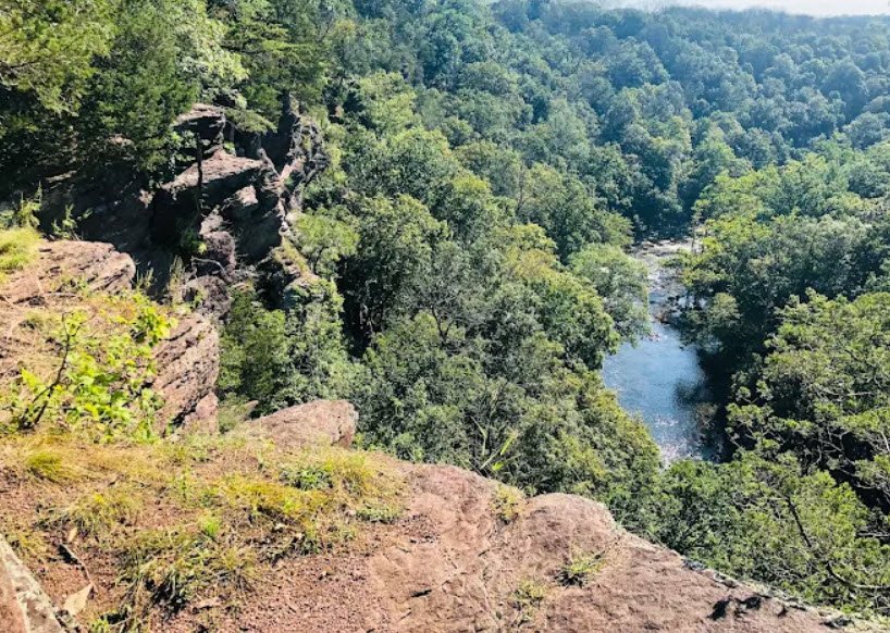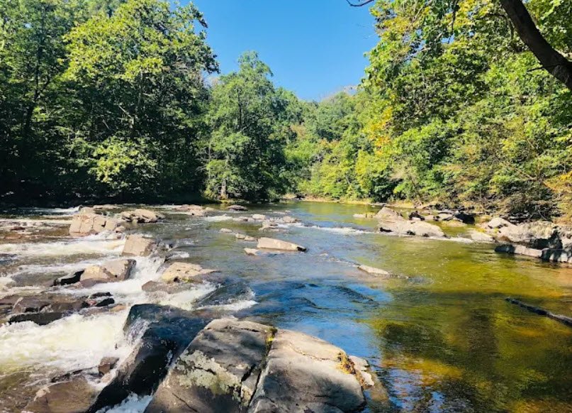 This day-use park features a scenic picnic area by the creek, the dramatic 200-foot High Rocks cliff offering stunning overlooks of the creek's horseshoe bend for rock climbing with over 60 routes, and short hiking trails like the accessible Stover Trail amid forested terrain.