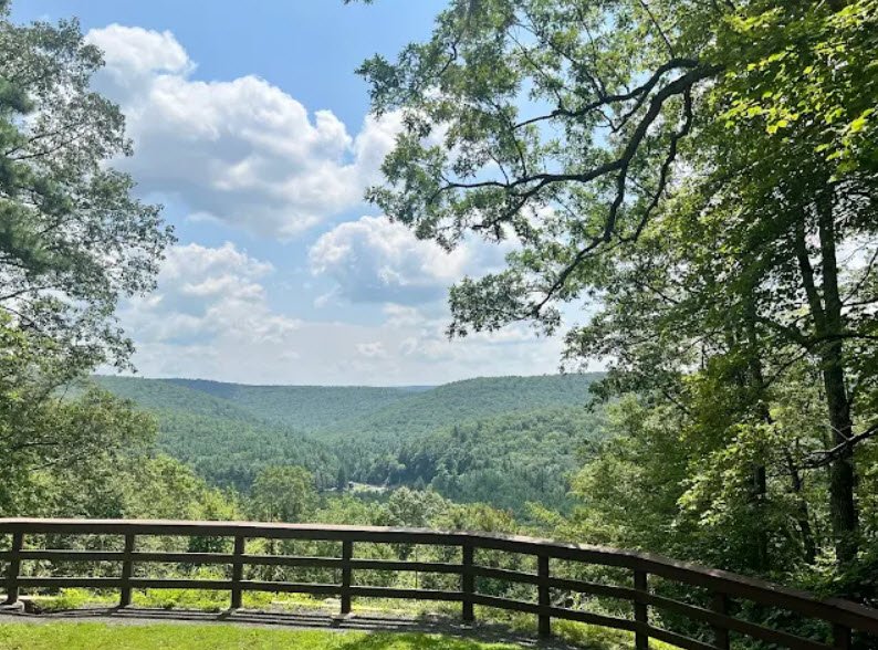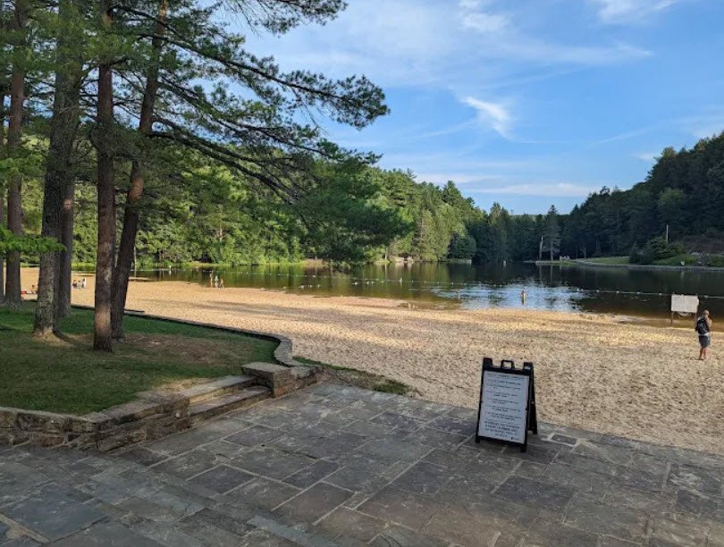 Centered on Halfway Lake—a spring-fed, 7-acre body held by a hand-laid sandstone dam built by the Civilian Conservation Corps in the 1930s—it offers swimming on a sandy beach, boating, fishing, modern camping, rustic cabins, picnicking pavilions, and hiking trails connecting to the Mid-State Trail.