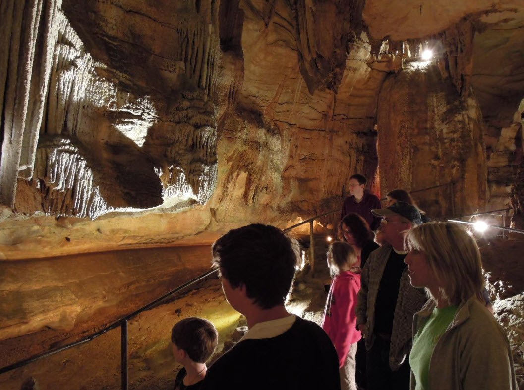 Discovered by Boy Scouts led by Eddie Rickles in the 1950s, the caverns were developed for public tours and later became a state park in 1974. Besides cave tours, the park offers amenities including hiking trails, an Olympic-sized swimming pool, picnic areas, gem mining, and camping facilities with sites for tents and RVs.