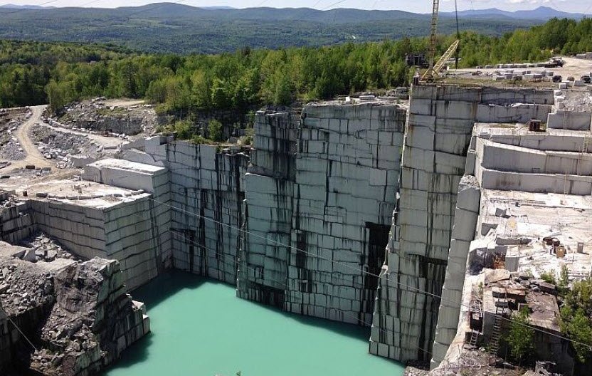 Rock of Ages Granite Quarry in Barre, Vermont, is one of the largest deep-hole granite quarries in the world, operating since the late 1800s. It produces the famous Barre granite, known for its fine grain, durability, and suitability for monuments and memorials.
