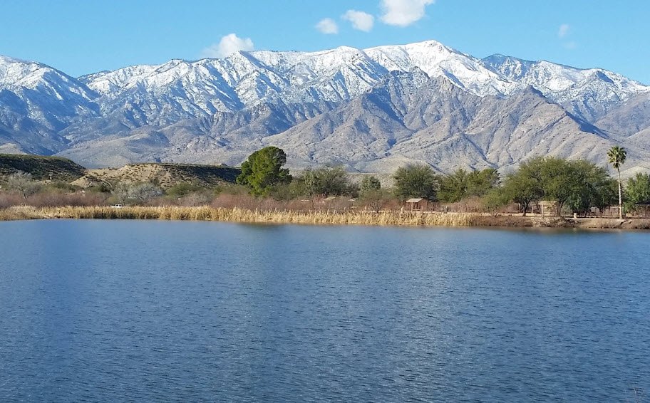 Roper Lake State Park lies six miles south of Safford in southeast Arizona's Graham County, encircling a 32-acre lake at the foot of the towering Pinaleño Mountains and Mount Graham in the Gila River Valley. Opened in 1974 after the state transformed former ranchland into a reservoir, this 400-acre site provides camping across three lakeside areas, rentable cabins, a boat ramp for electric-motor craft, sandy swimming beach, stone hot tub, picnic spots, restrooms, showers, and five miles of hiking trails near Dankworth Pond for added water access and paths. Renowned for seasonal fishing of stocked largemouth bass, rainbow trout, and sunfish, plus birdwatching with herons, quail, gulls, ducks, and terns drawn to the largest regional waterbody amid shifting desert-to-forest habitats home to deer and the rare Mount Graham red squirrel.