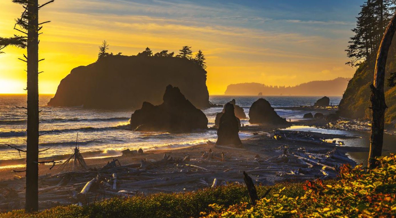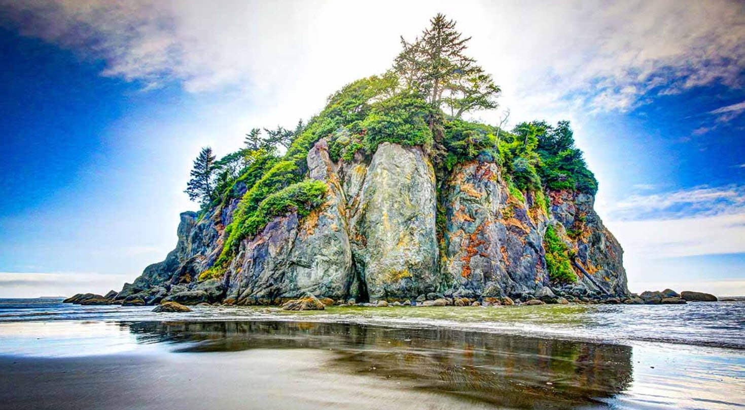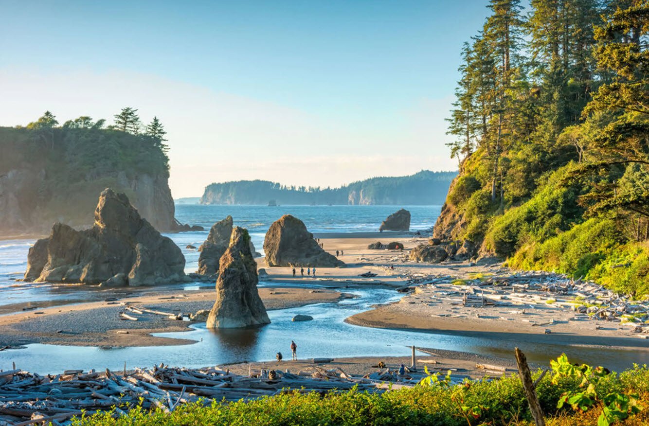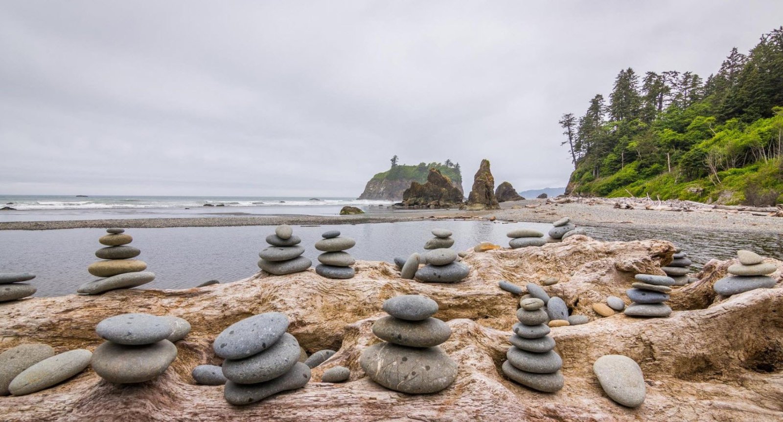 The beach gets its name from the ruby-like almandite crystals found in the sand, giving it a subtle red hue. Visitors can enjoy vibrant tide pools teeming with marine life such as sea stars, anemones, crabs, and mussels, especially during low tide. The beach is accessible via a short, steep trail through coastal forest and offers stunning views of nearby Destruction Island and its lighthouse.