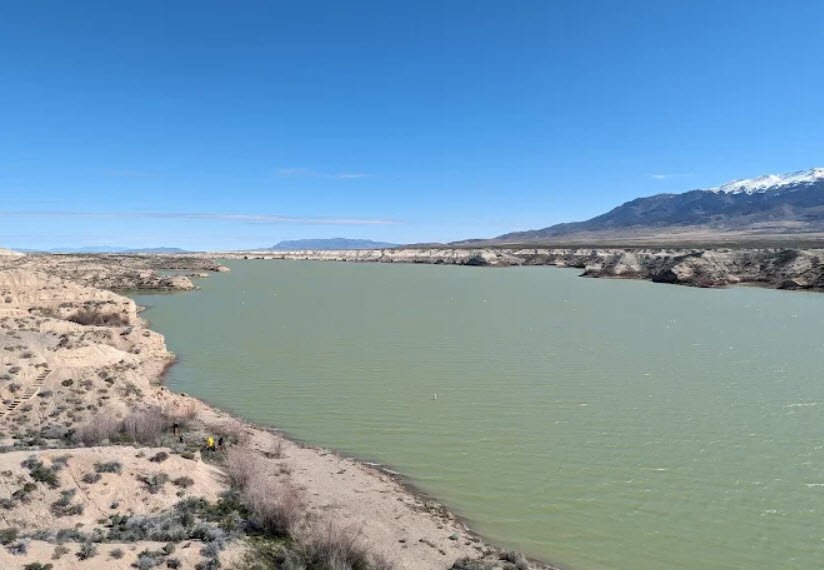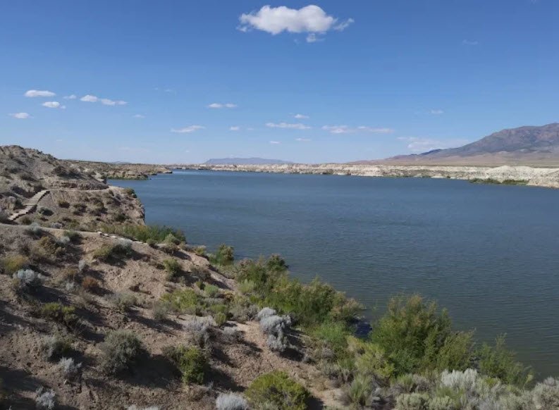 The area sits in a remote Great Basin desert landscape of sagebrush and rolling hills, with 72 miles of shoreline and a 22‑mile‑long reservoir built by a 75‑foot earthen dam completed in 1936 as part of a New Deal irrigation and flood‑control project before becoming a state recreation area in 1971.