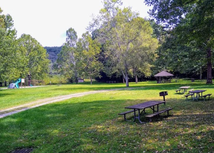 Now focused on land-based recreation, it offers 13 miles of hiking trails through mature forests, wetlands, and fields, a seasonal swimming pool, modern campground with 50 sites for RVs and tents, picnic pavilions, and trout fishing in stocked streams amid rolling hills.