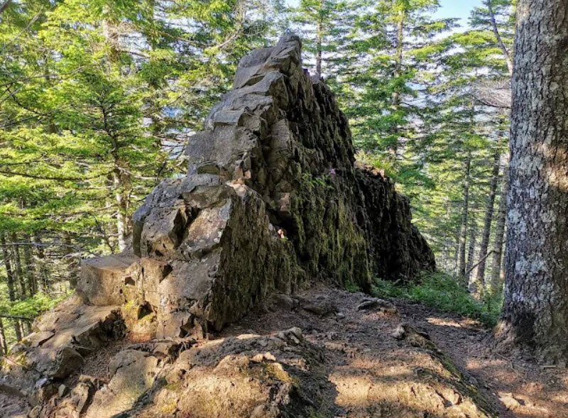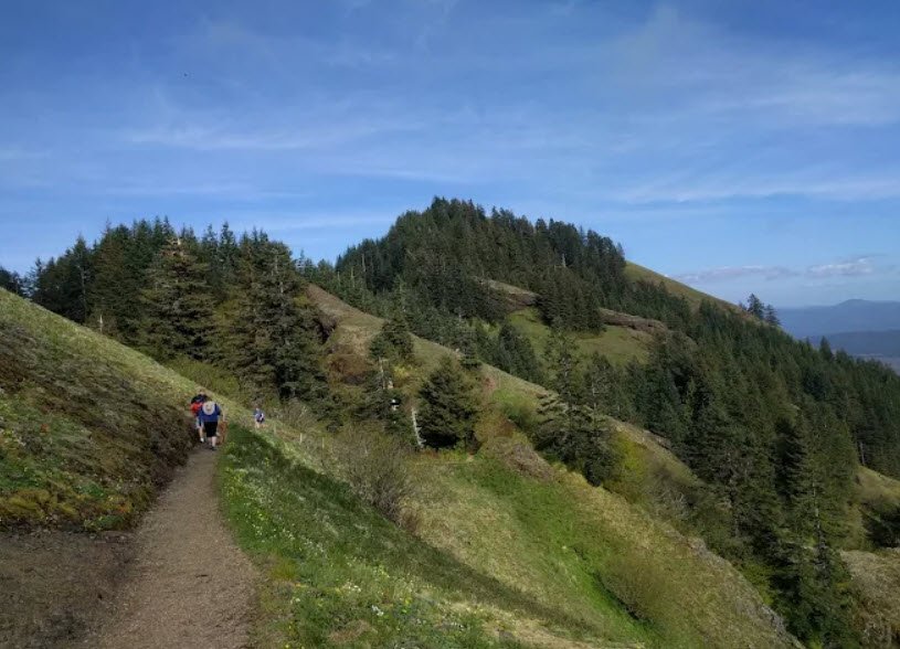 Accessible via Saddle Mountain Road off U.S. Route 26 about 20 miles from Seaside, it offers a challenging 2.5-mile round-trip hiking trail from a picnic area with restrooms, climbing 1,634 feet through old-growth forests of cedar, hemlock, and spruce, grassy balds, and rocky slopes stabilized by wire mesh, best suited for experienced hikers with proper gear due to steep, slick sections and rapidly changing weather.