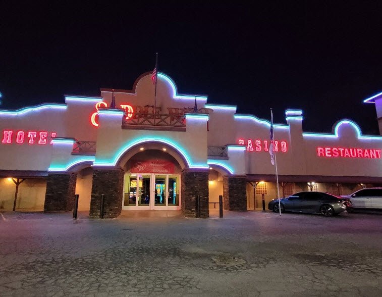 Saddle West Hotel Casino RV Resort is a Western-themed casino property in Pahrump, Nevada, about 60 miles west of Las Vegas along Highway 160, opened in 1973 with 155 comfortable guest rooms including suites, an 80-space RV park with full hookups, showers, and big rig parking.