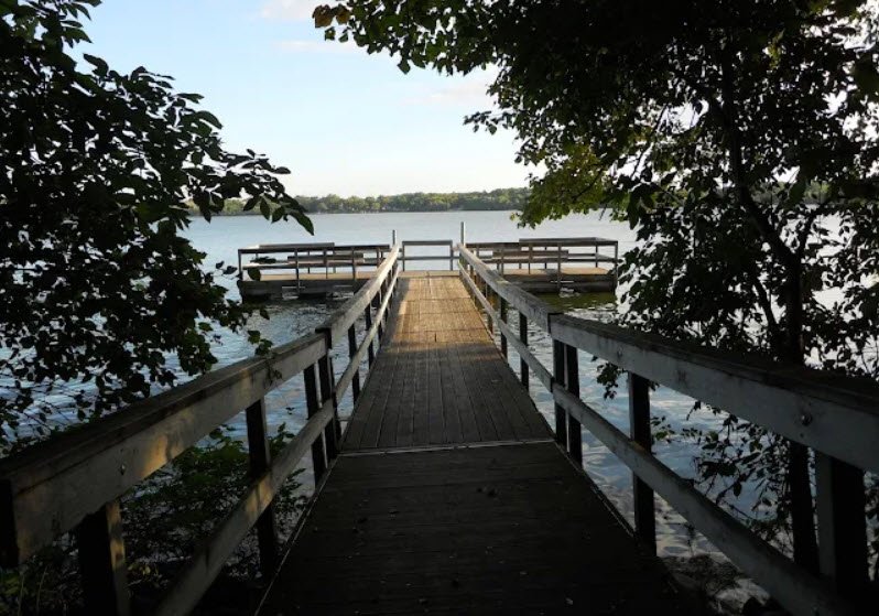 Established in 1963, it offers 5 miles of hiking trails named for Dakota heritage like "singing hills," a section of the 39-mile paved Sakatah Singing Hills State Trail for biking and skating, fishing piers for walleye and bass, canoeing, and bike-in campsites amid rich birdlife and wildlife.
