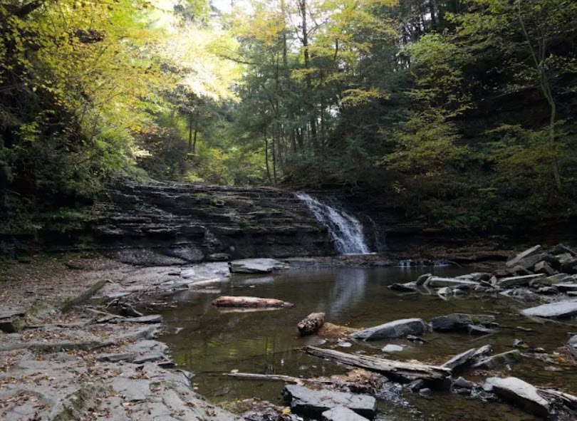 Unique as the only Pennsylvania state park managed by the nonprofit Friends of Salt Springs Park—which owns an additional 437 adjacent acres for a total of 842 protected acres—it offers nearly 15 miles of forested hiking trails, trout fishing in stocked streams, picnicking, and a bubbling salt spring.