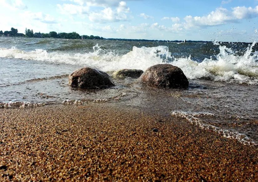 Sandy Shore Recreation Area, South Dakota's smallest state park at 19 acres near Watertown off US Highway 212, sits on the shores of the clear, 5,250-acre glacial Lake Kampeska with its famous long sandy beaches.