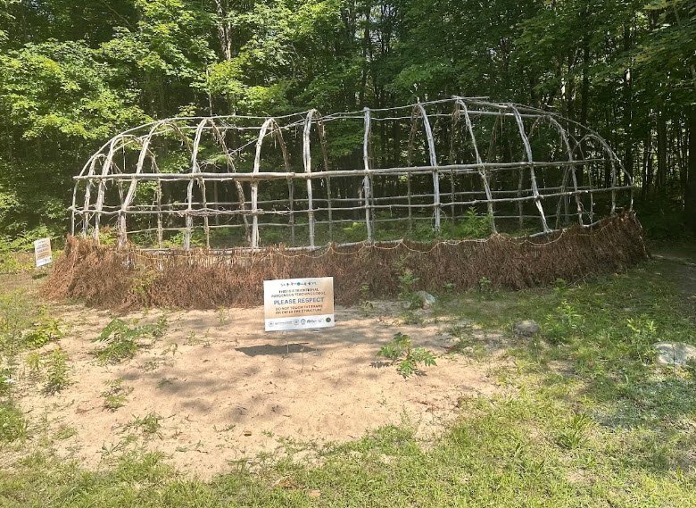 Visitors reach the carvings along a short, quarter‑mile accessible trail that ends at a protective roofed shelter over the rock face, and they can also walk a longer, wooded, self‑guided loop trail that passes stream branches and remnants of a 19th‑century logging camp, all within a quiet, historically rich landscape that is co‑managed by the Michigan Department of Natural Resources and the Saginaw Chippewa Indian Tribe.