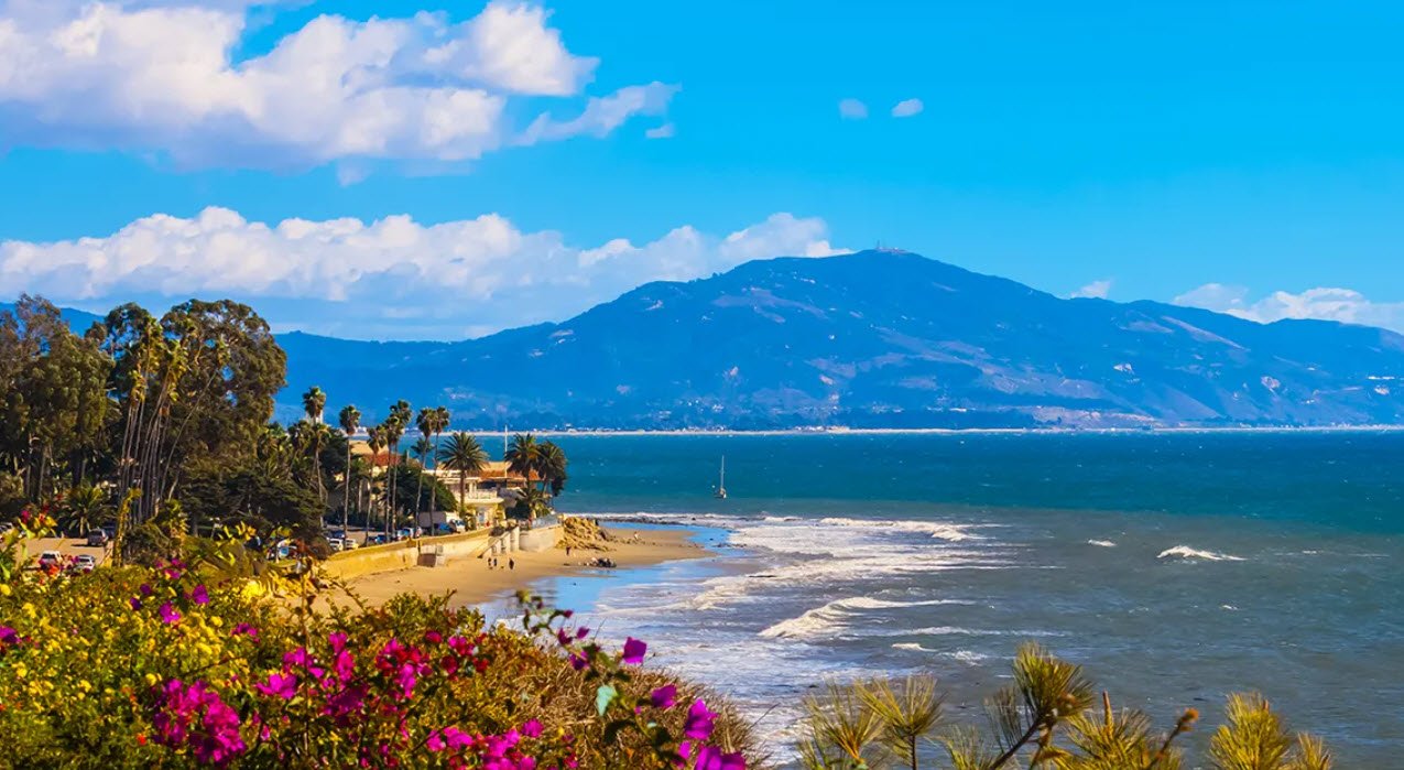 Santa Barbara, California, is a coastal city located about 90 miles north of Los Angeles, known for its Mediterranean climate, stunning beaches, and scenic beauty nestled between the Santa Ynez Mountains and the Pacific Ocean.