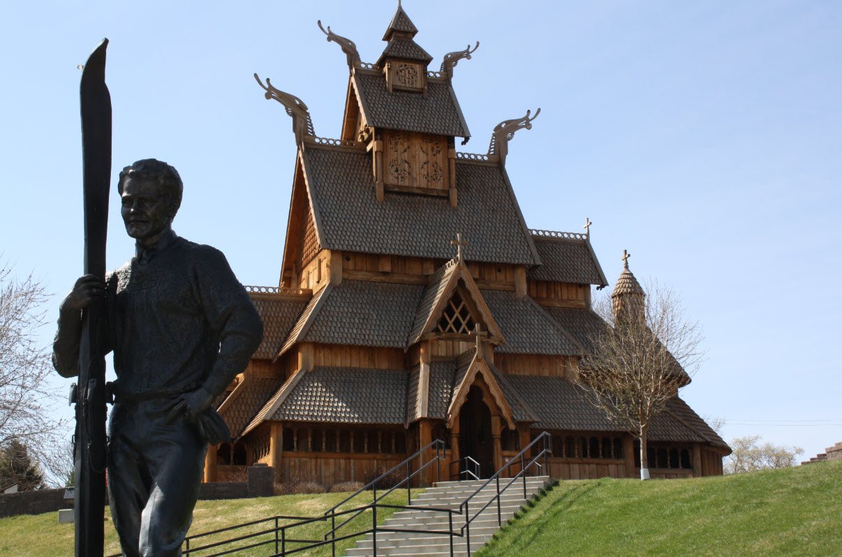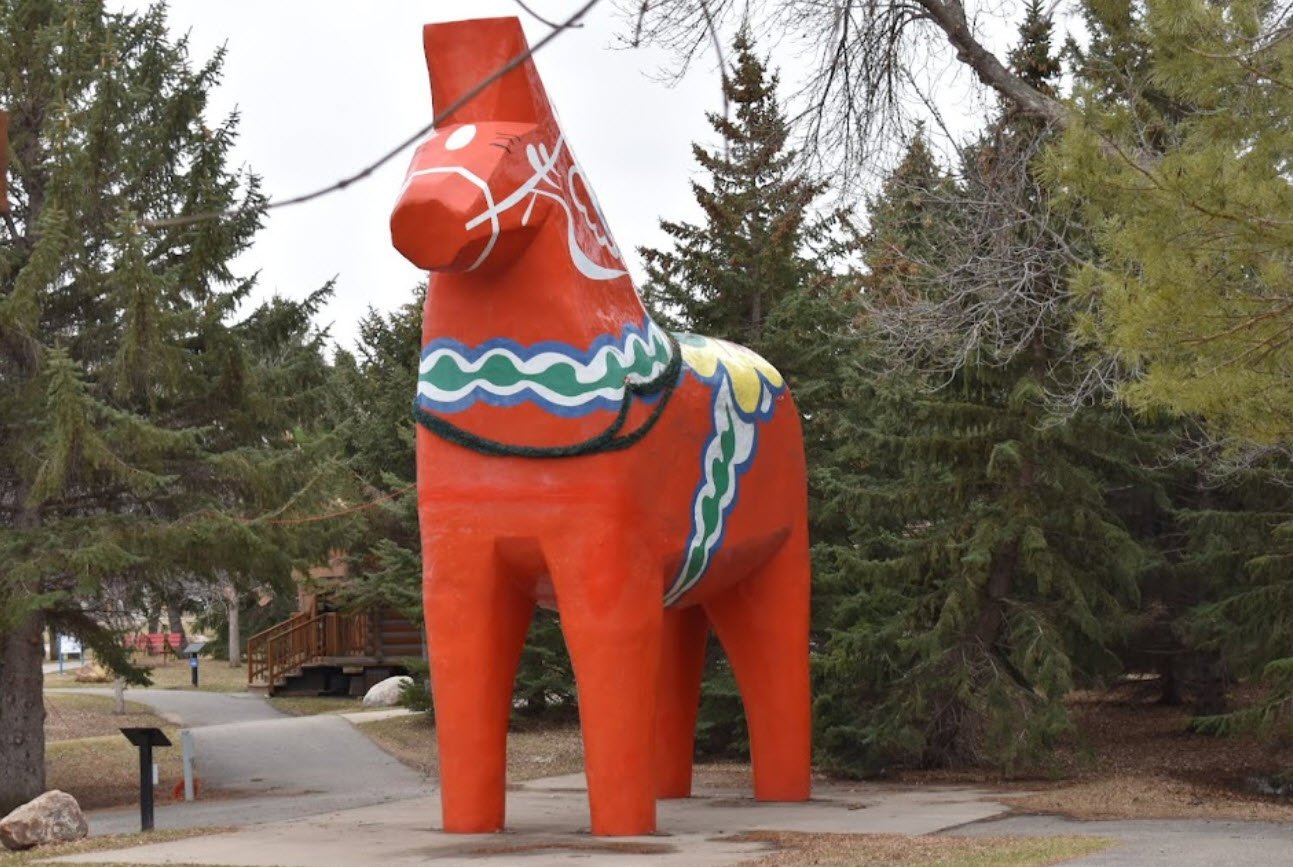 Central to its mission is the Scandinavian Heritage Park, established in 1990, which features authentic replicas of traditional Scandinavian structures including a Norwegian Stave Church, a Danish windmill, and a 30-foot-tall Swedish Dala Horse, alongside statues commemorating notable figures like explorer Leif Erikson and ski pioneer Sondre Norheim.