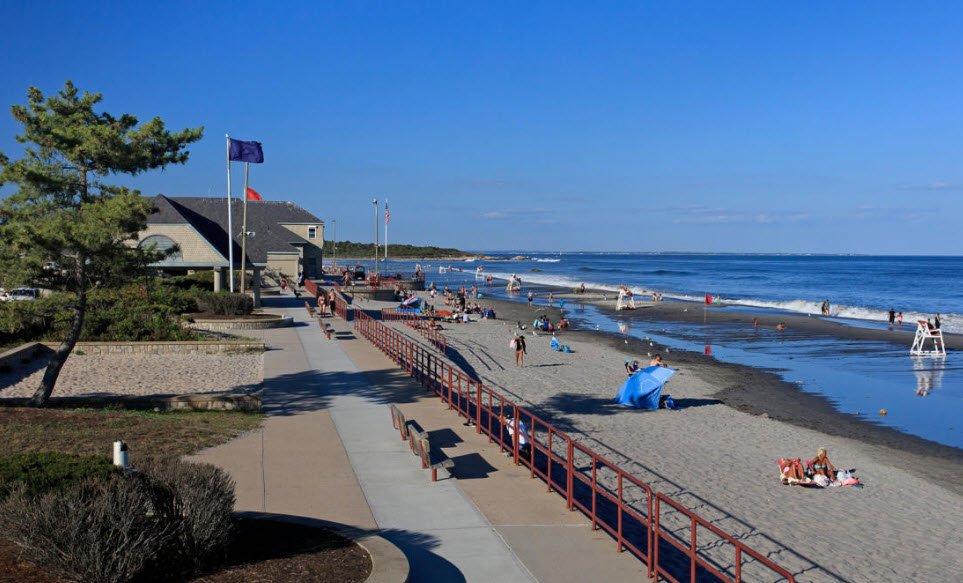 Facilities include concession stands, shaded pavilions, restrooms, showers, and lifeguards during the season, ensuring a safe and comfortable experience.The site also preserves stone ruins of the historic Windswept Estate mansion. Scarborough is one of Rhode Island’s most visited beaches, drawing families, locals, and tourists who enjoy its natural beauty and range of outdoor activities.