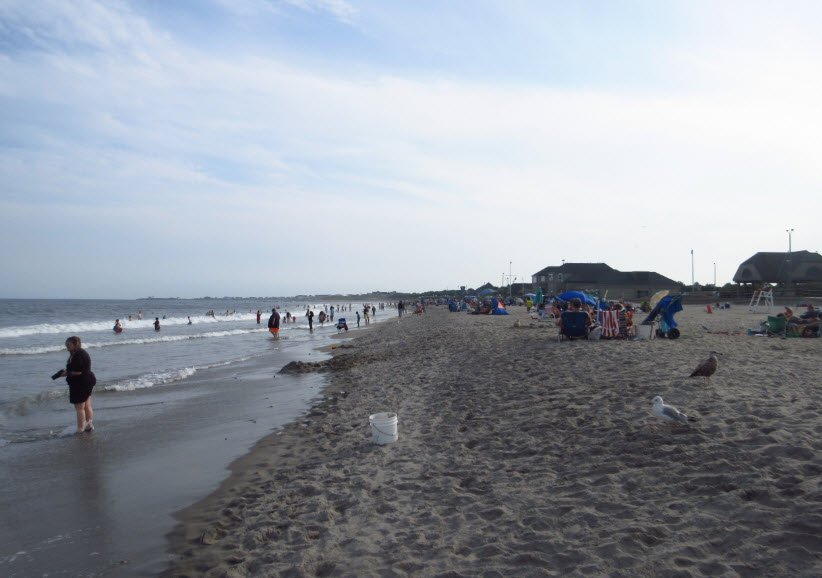 Scarborough State Beach in Narragansett, Rhode Island, is a popular public recreation area with about 60 acres and over 2,300 feet of sandy shoreline along the Atlantic Ocean.