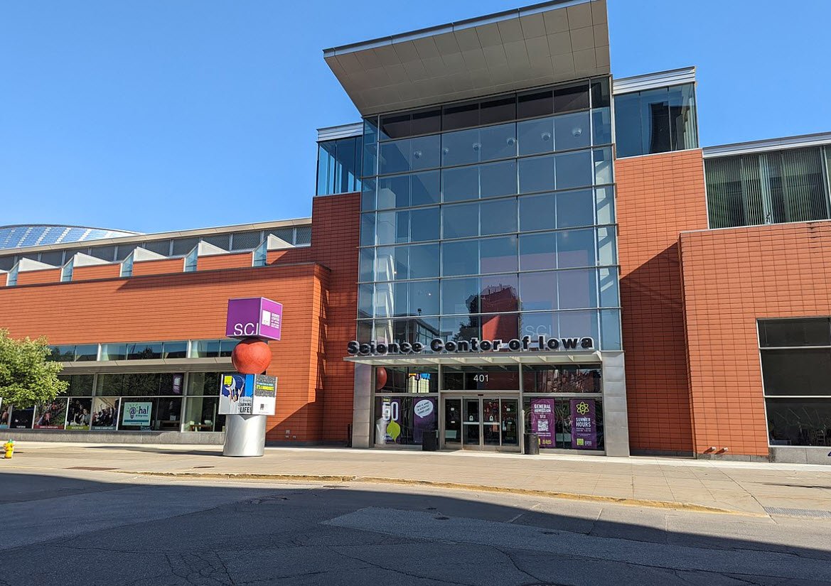 The Science Center of Iowa in Des Moines, established in 1970 and moved to its current downtown location in 2005, is a hands-on science museum dedicated to engaging visitors of all ages through interactive exhibits and educational programs.