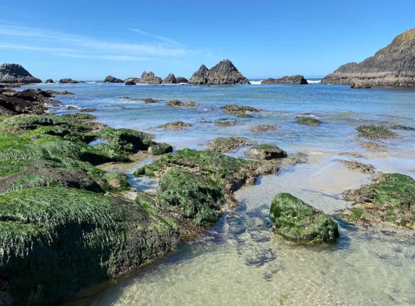 Acquired starting with a 1929 donation from Lincoln County and expanded through federal land transfers, it offers a picnic area amid shore pine, spruce, and salal, an ADA-accessible viewpoint midway along a short steep trail to a sandy beach rich with tide pools full of anemones, starfish, crabs, and other sea life, plus panoramic ocean views.